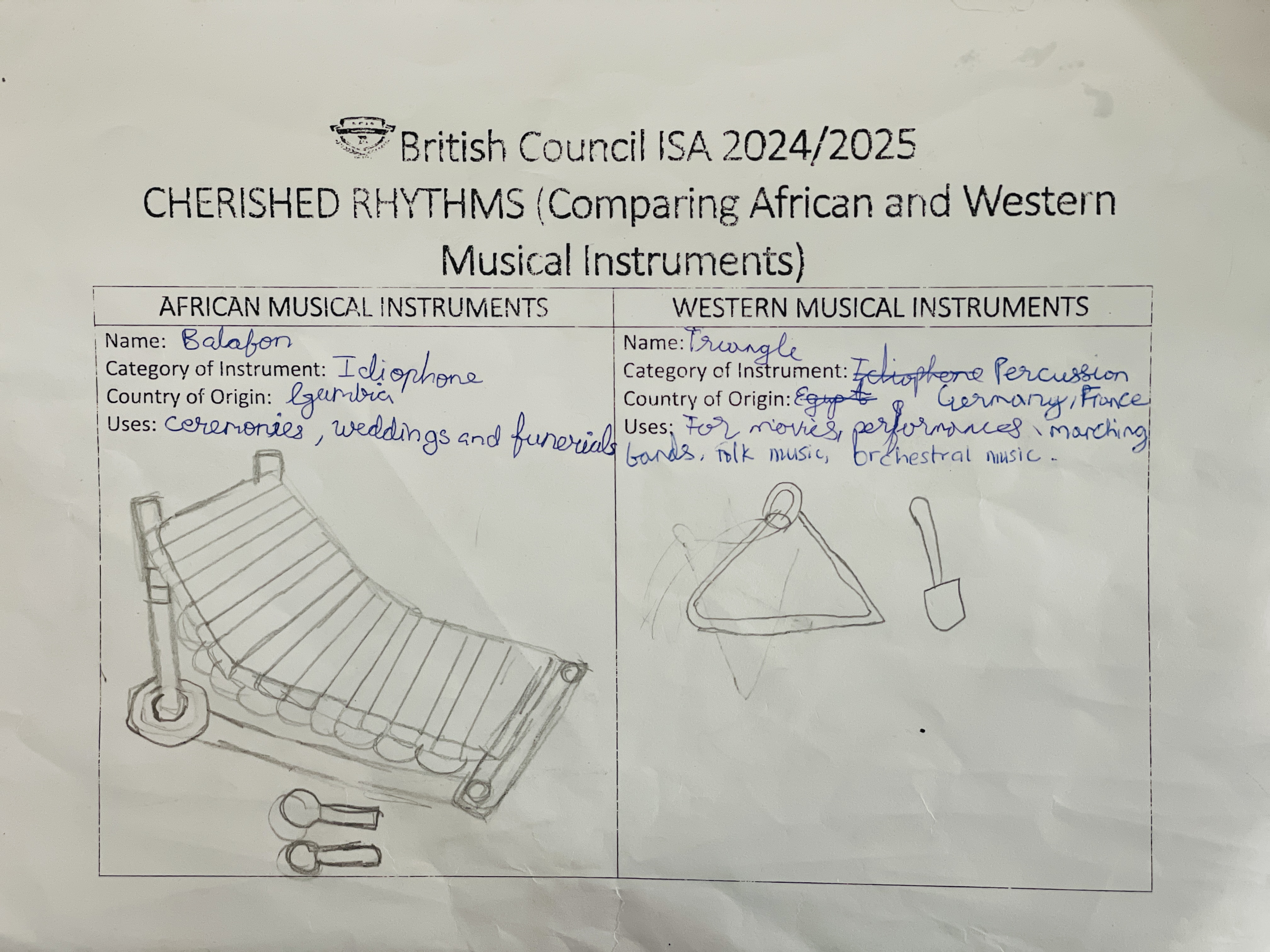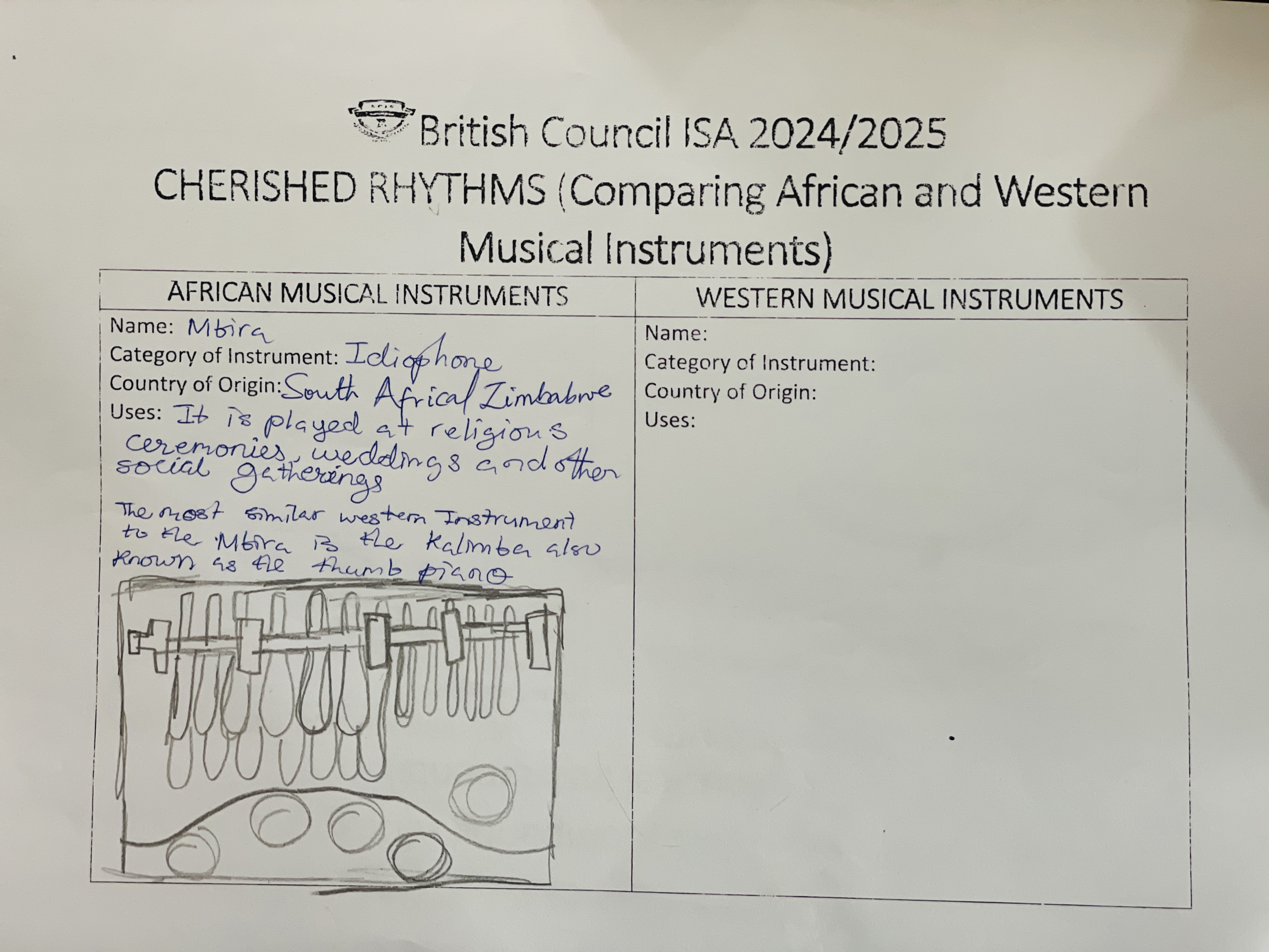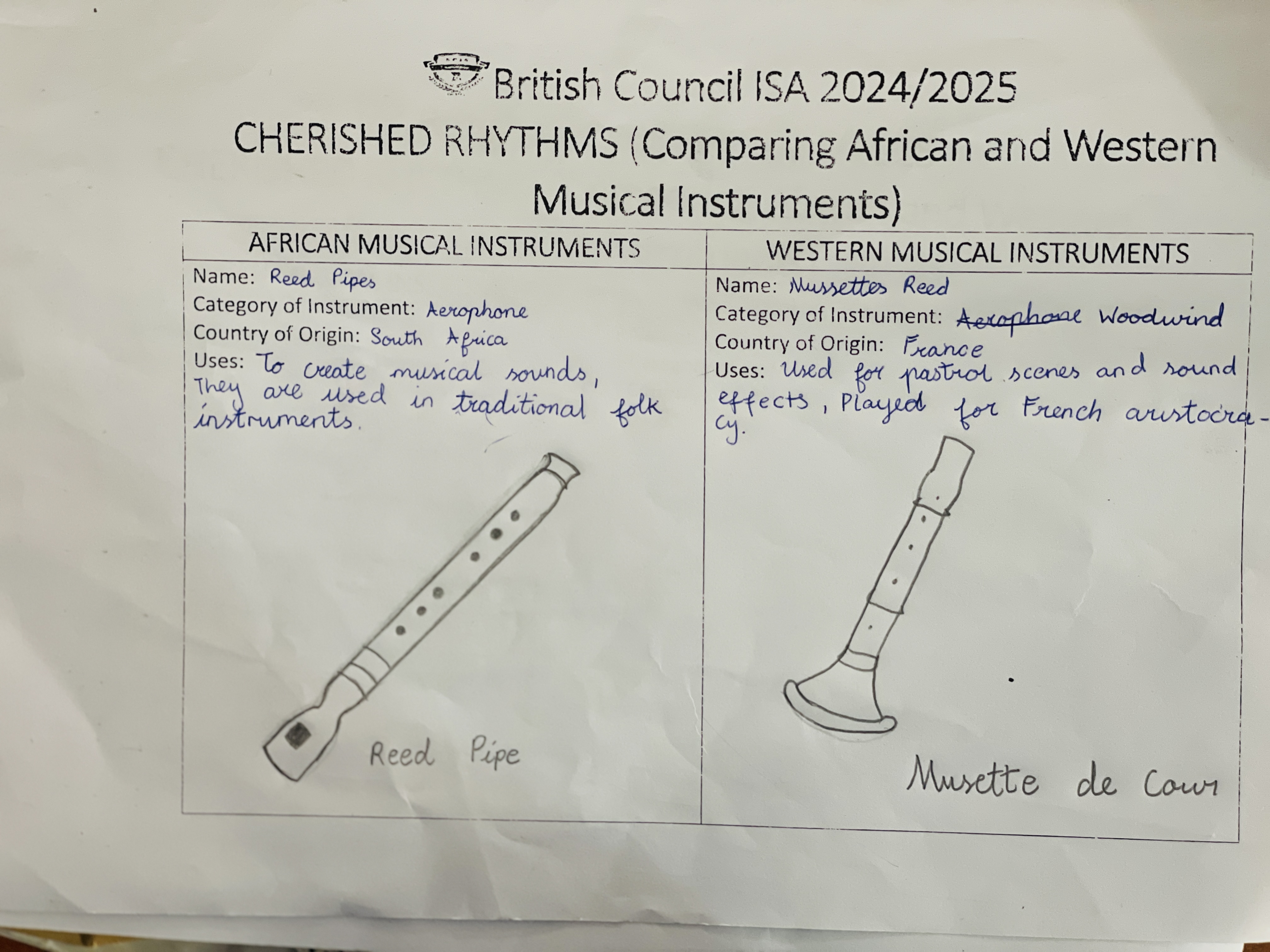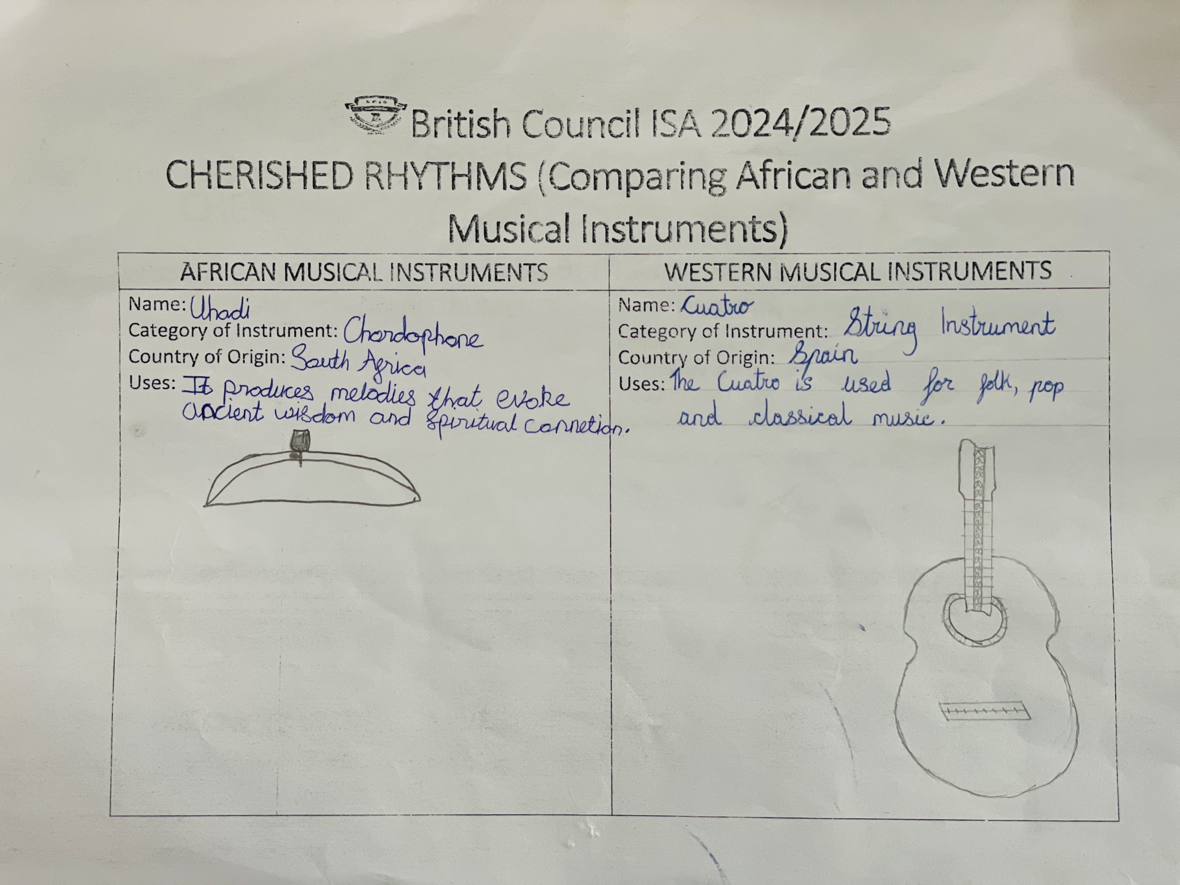 The activity featured exciting elements like cross-country video presentations, learner-created rhythm patterns and models of instruments, and reflection worksheets that deepened understanding.